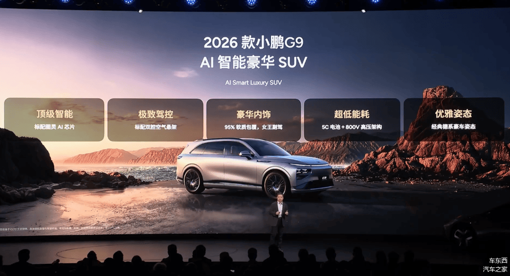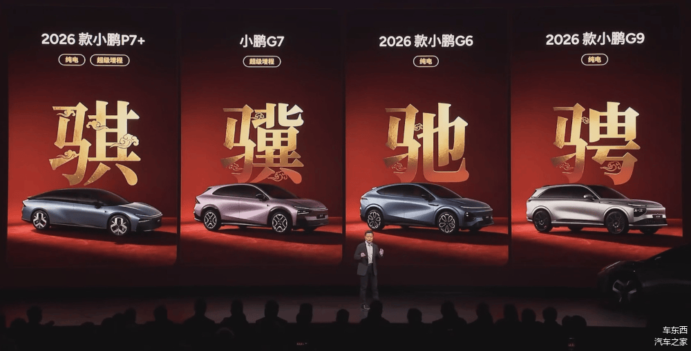车东西1月8日消息,就在刚刚,小鹏汽车董事长、CEO何小鹏透露,“今年我们会推出4款全新的SUV,而且是面向全球的”,而在今天小鹏汽车2026年首场发布会现场,小鹏汽车一口气发布了四款车型,分别是2026款小鹏P7+、小鹏G7、2026款小鹏G6、2026款小鹏G9。