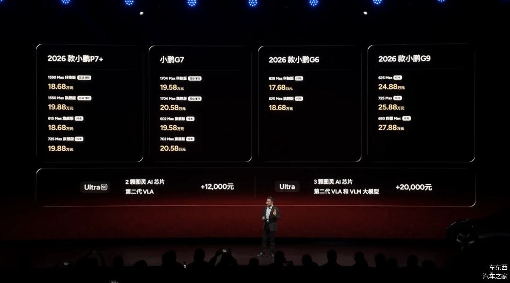 ▲发布会上四款车型均搭载小鹏第二代VLA