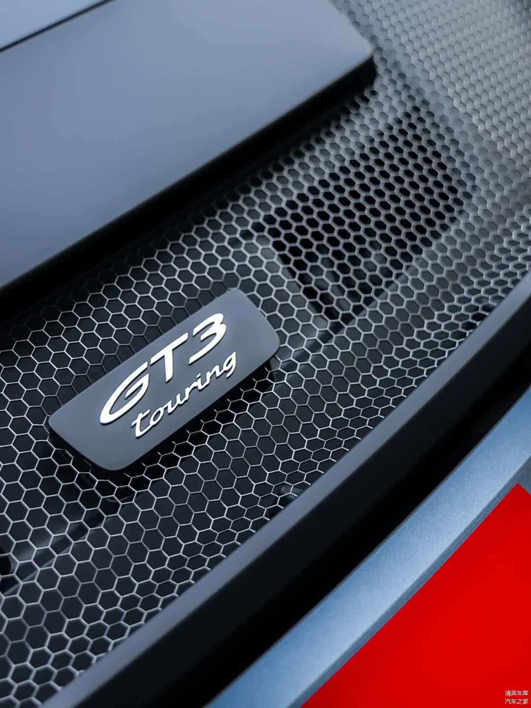 如果是想通过车辆外观来区分开GT3和GT3 Touring这两款车,可以看到GT3标配为追求极致的空气动力学效能和轻量化的大型固定后扰流板(尾翼),使用的材质是碳纤维复合材料,而911 GT3 Touring采用的电动升降尾翼,这是它与普通911车型在外观和性能上的核心区别之一。此外,911 GT3 Touring还可以选装后排座椅,普通GT3仅有前排可供乘坐,而GT3 Touring后排可以充当应急使用,并且座椅还支持按比例放倒。