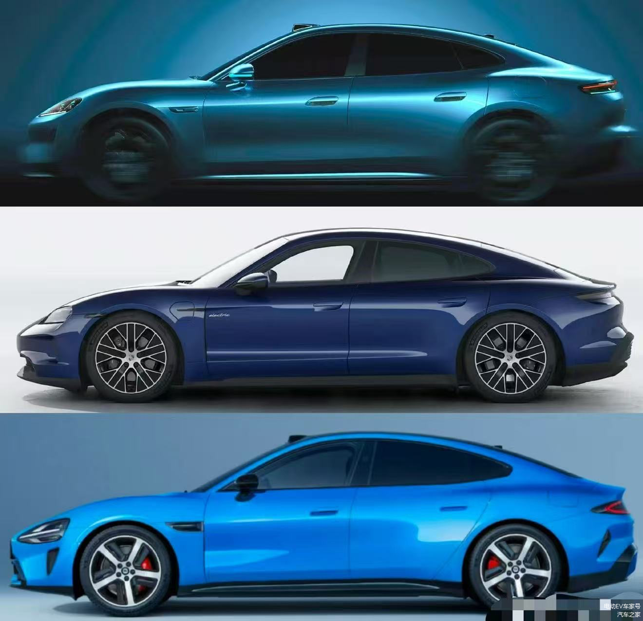 无独有偶,2026年1月7日,尚界汽车则高调发布概念海报,发布全新轿跑Z7预告图,定位高端轿跑市场。官方描述其“外观比肩欧洲一款百万级别性能车”,然后就有网友扒出来他们三个的对比照,这种“中门对狙”的操作,让人也是很难评价。