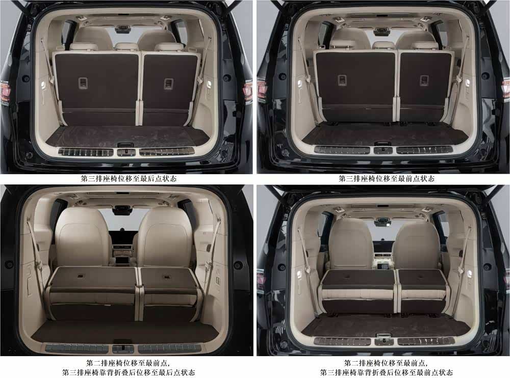 此外,在申报图中可以看到智界V9的座椅布局采用了2+2+3的结构,其中第三排可以放倒,二三排座椅均可实现前后移动。