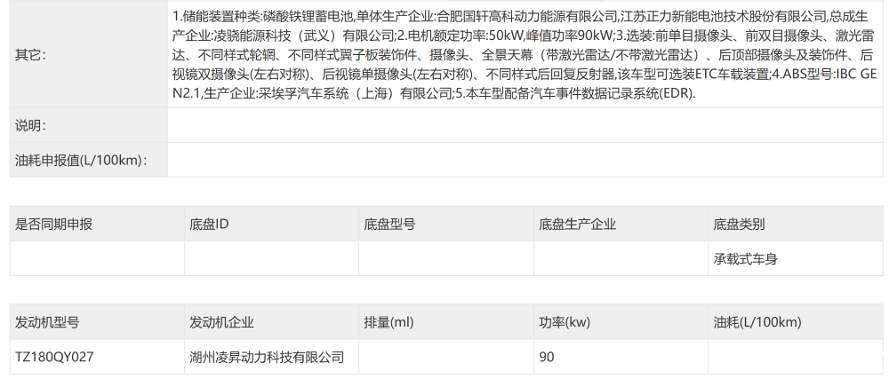 3、零跑D19此前车身尺寸和动力等参数已经官方公布,此次申报中可以看到其增程版采用了吉利旗下极光湾科技有限公司的增程器,零跑A系列首款车型零跑A10也同时亮相;