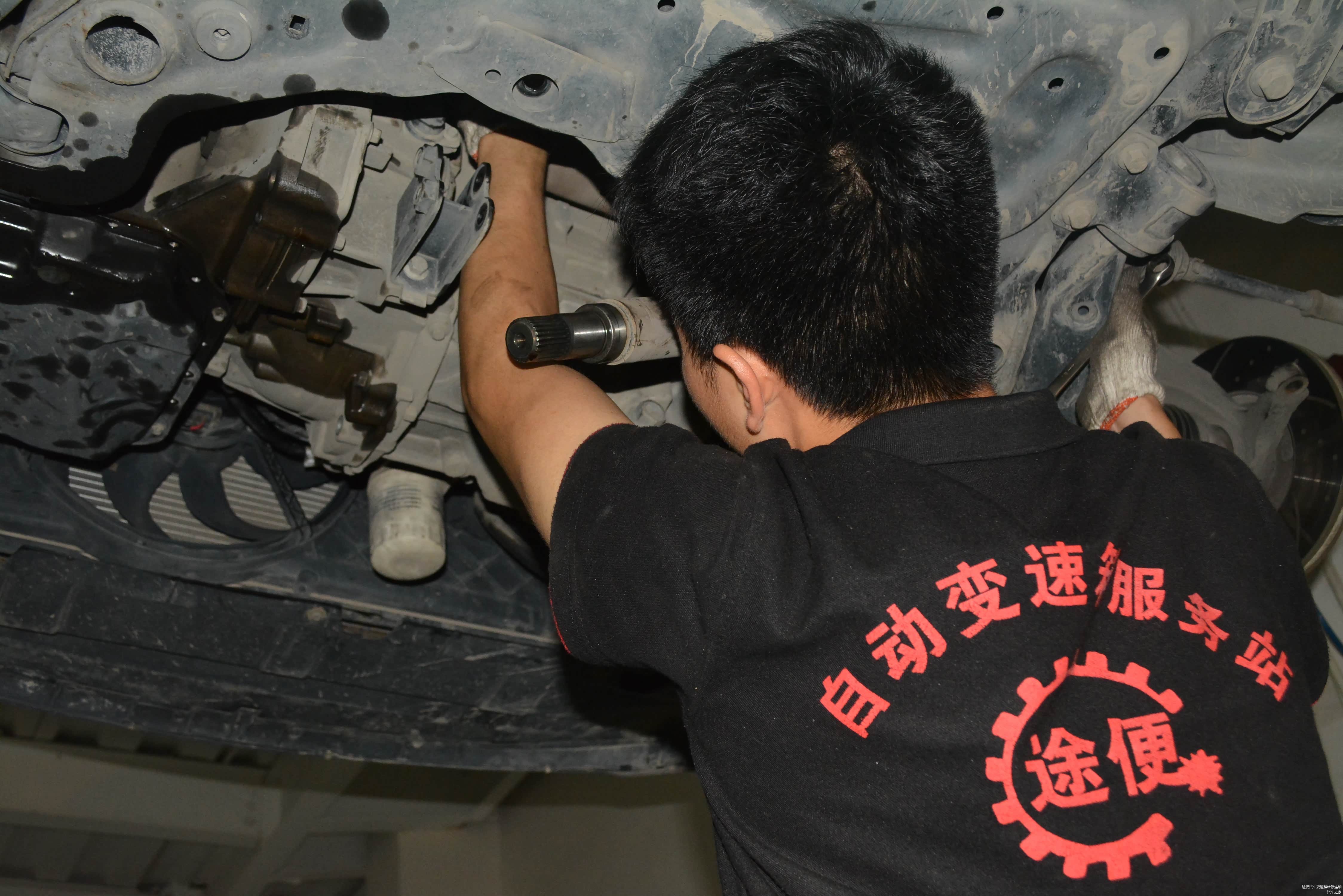 途便变速箱维修人员对变速箱进行拆卸。