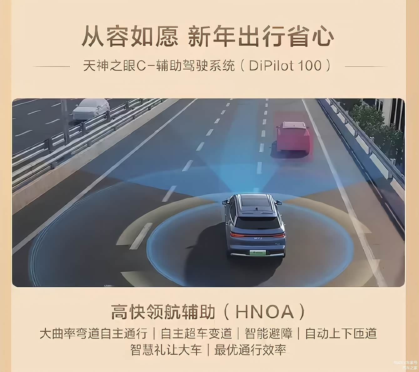 智能安全配置方面,新车同样展现出越级实力。220公里版本标配的“天神之眼C-辅助驾驶系统”,提供了高速领航和自动泊车等实用功能。