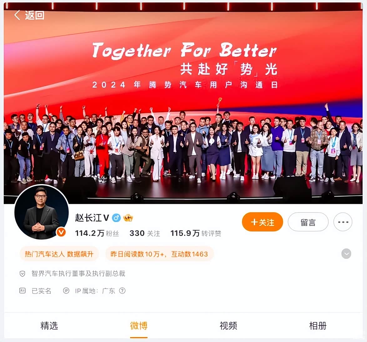 分享一个有意思的事情,赵长江微博的背景还是腾势,他还爱着他,可能在长江总心里,腾势永远都是自己的孩子。