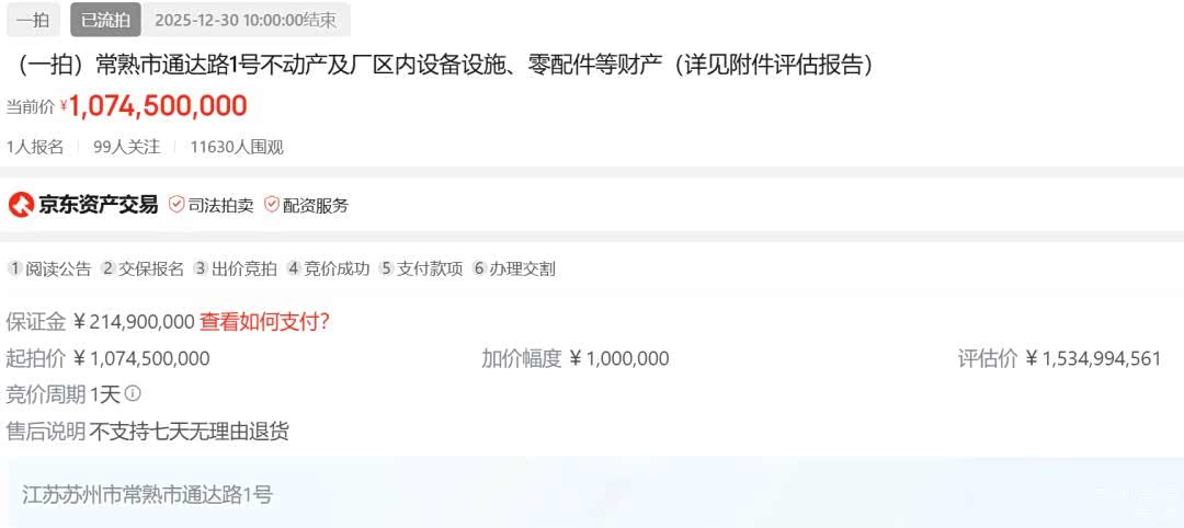 但不确定性也很明显,目前常熟相关部门未作任何回应,1月15日拍卖已如期启动,京东平台显示有近8000人围观但仅1人报名,即便举报被受理,能否叫停已启动的拍卖程序还是未知数。