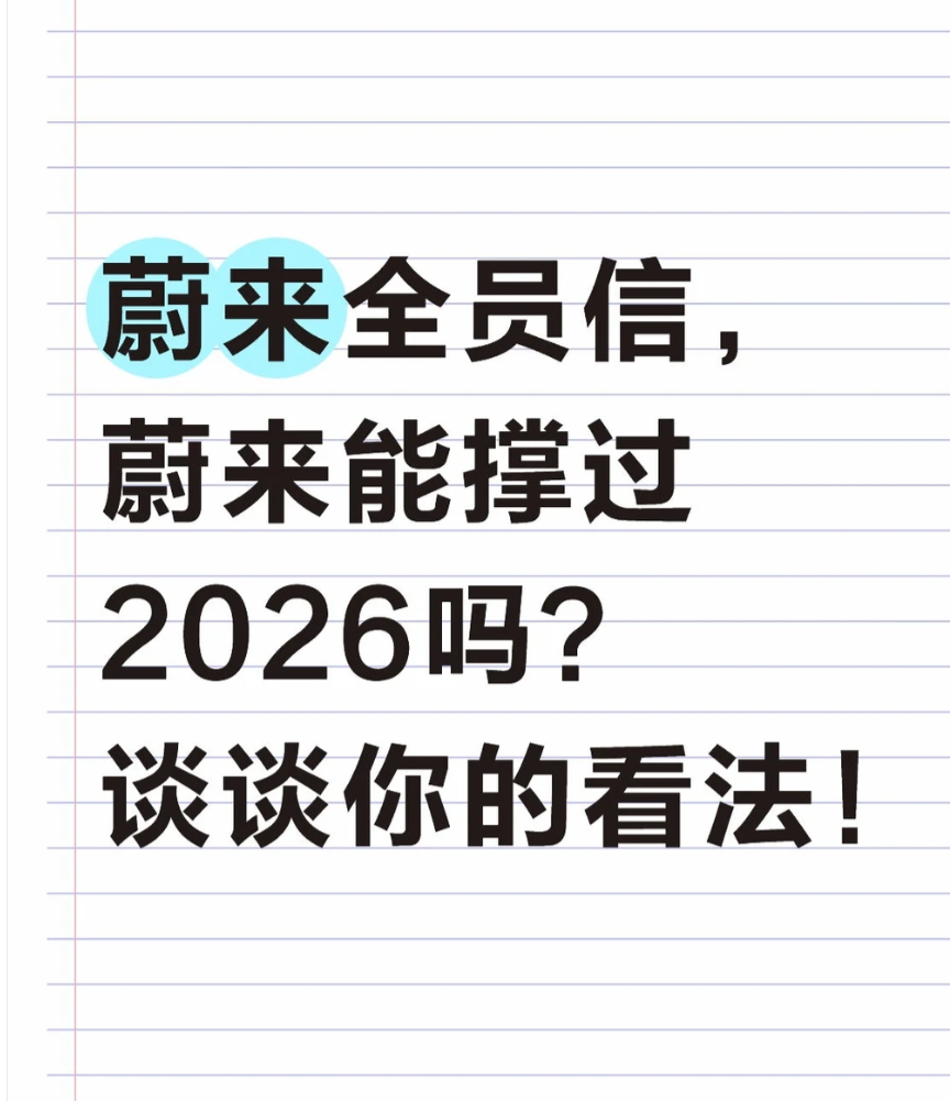 元旦深夜,蔚来创始人李斌的一封2880字全员信,让“蔚来能否撑过2026”的讨论再度升温。信中既有2025年32.6万台交付、三大品牌齐发力的亮眼成绩,也毫不避讳行业决赛阶段的残酷竞争,以“结硬寨,打呆仗”的核心基调,抛出了技术、基建、渠道、全球化、组织五大破局动作。一边是重回高速增长的底气,一边是盈利压力与海外短板的现实,蔚来2026年的“生存之战”,早已充满悬念。