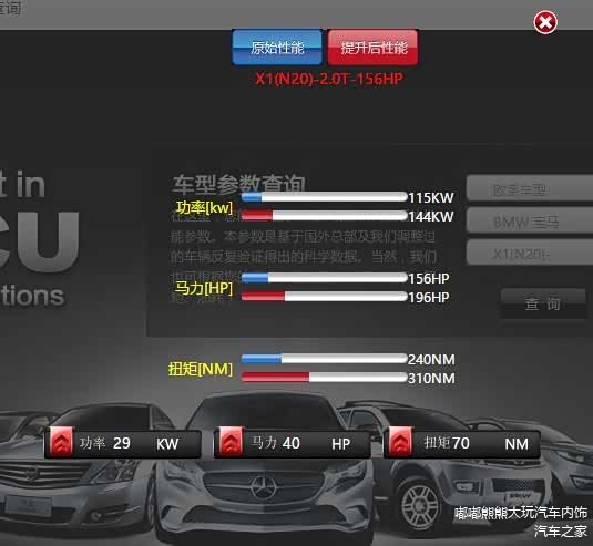 在市区日常驾驶中,这款车的动力表现虽平淡但足够应对。然而,在高速公路或郊区道路上,与奥迪A4和大众系列的2.0T同级车型相比,它就显得有些力不从心,甚至让车主产生了换车的想法。直到车主在百度上发现了“艾森ECU升级”的动力提升方案,这才找到了让心爱的座驾重焕新生的方法。车辆详细信息如下:品牌为BMW宝马,车型为X1 sDrive18i,排量2.0T,原厂马力156HP,发动机型号为N20B20,出厂日期为2015年1月,车辆状态为原厂未改装,升级需求是在安全范围内进行最佳调校。