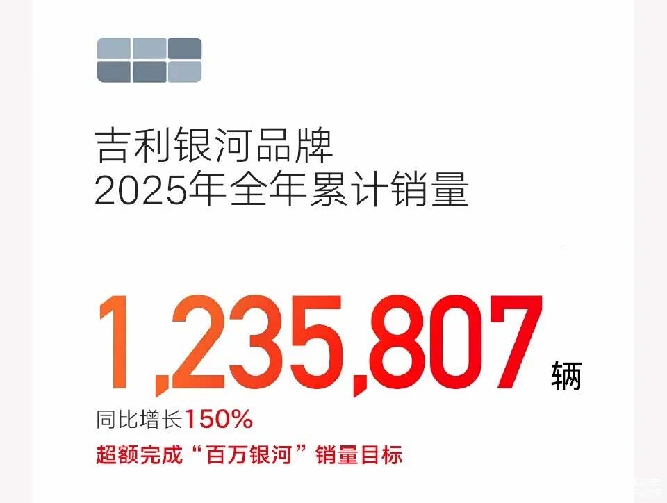 2025年是其品牌创立的第三年,吉利银河仅用10个月销量就突破百万,全年销量更是达到了123.5万台,同比增长150%,真的是2025年新能源市场的一匹黑马。