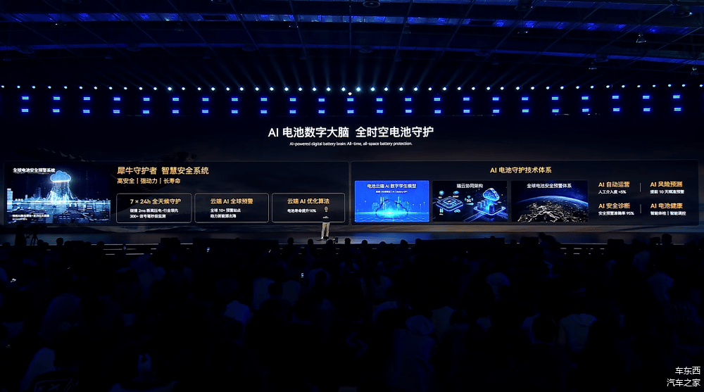 动力电池搭载AI电池数字大脑,为电池提供7*24h全天候守护,确保电池高安全、行车强动力以及电池长寿命。