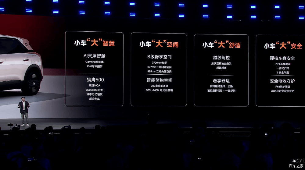 在AI之夜的新品发布环节,搭载了奇瑞全新AI产品的车型矩阵风云T9L、风云A9、 iCAR V27(图片 | 参数 | 询价)也在现场亮相。