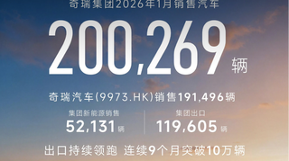 奇瑞集团1月销量20万辆 连续9个月超10万辆