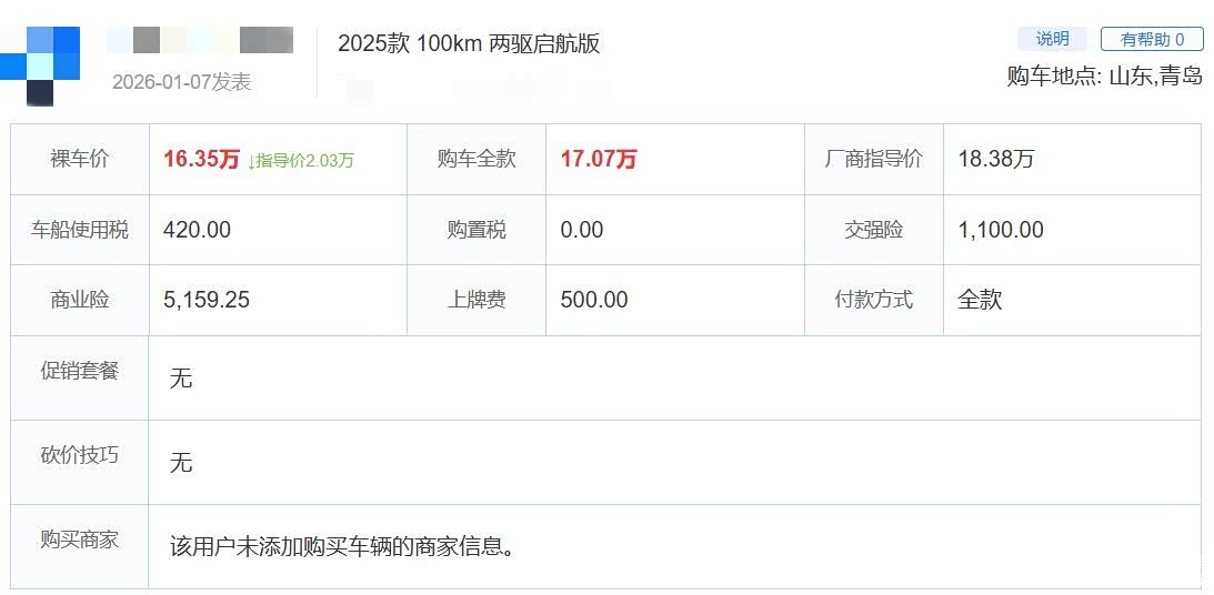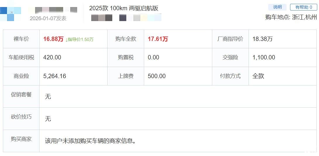 先看价格,根据山东青岛和浙江杭州的两位银河M9车主提供的信息来看,这款车的优惠幅度普遍在1.5万到2.03万之间,这两位车主选择的都是银河M9 100km 两驱启航版,售价18.38万元,青岛车主优惠完之后的价格是16.35万元,杭州车主优惠完之后的价格是16.88万元。这两位车主一个来自于北方城市,一个来自于南方城市,这就说明这款车的优惠让利地域范围很广,想选择这款车的朋友可以做一下参考。