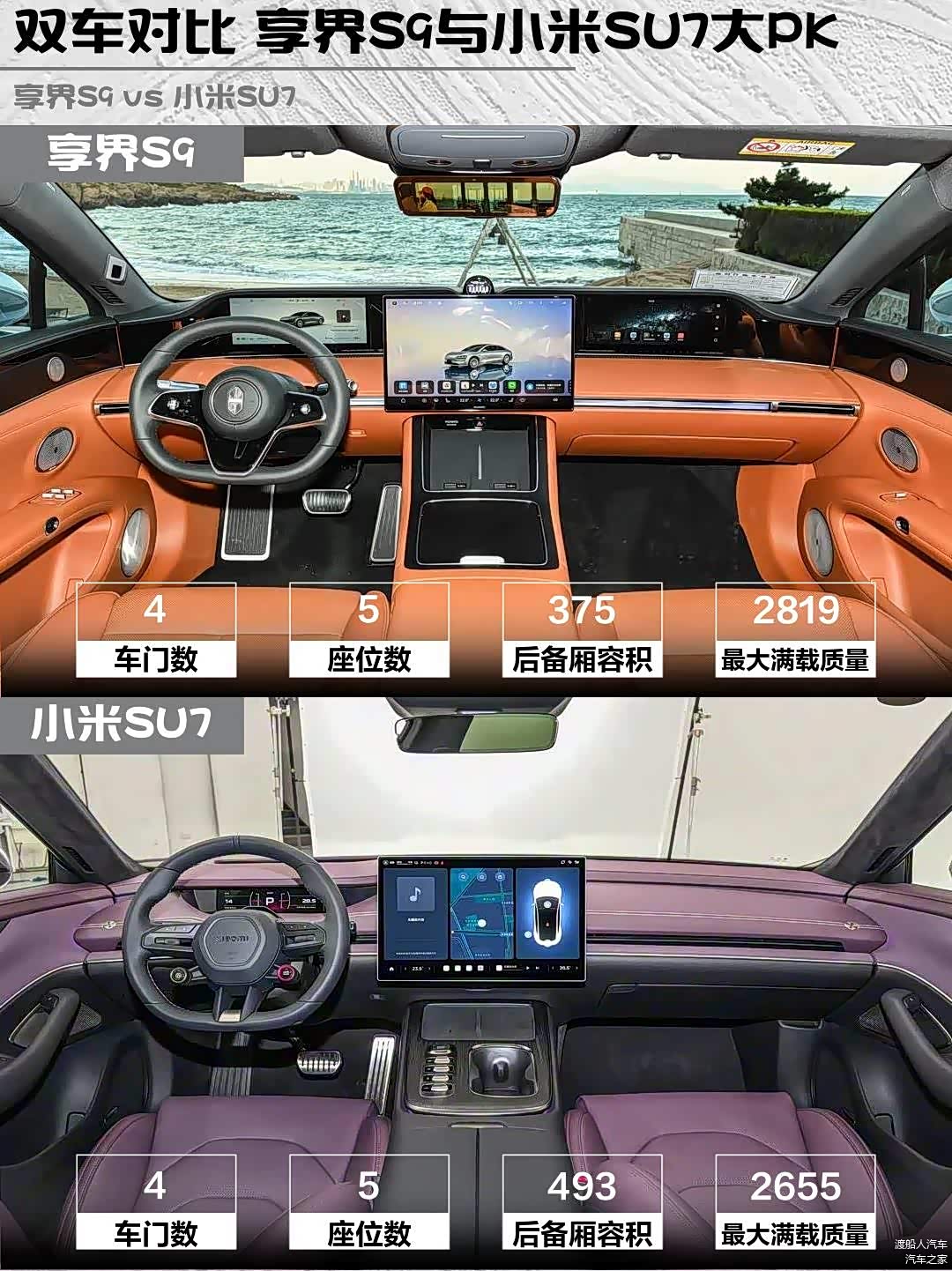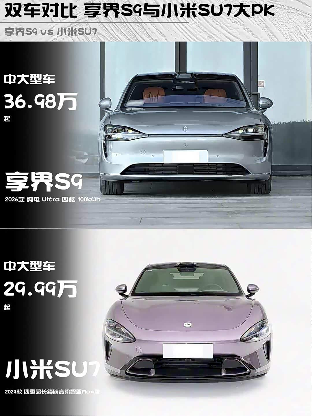 最近深度体验了两台热门纯电轿车——享界S9 2026款 纯电 Ultra 四驱 100kWh和 小米SU7(图片 | 参数 | 询价) 2024款 四驱超长续航高阶智驾Max版,发现它们虽然都是中大型车定位,但性格差异大到像两个星球的产物!🔥