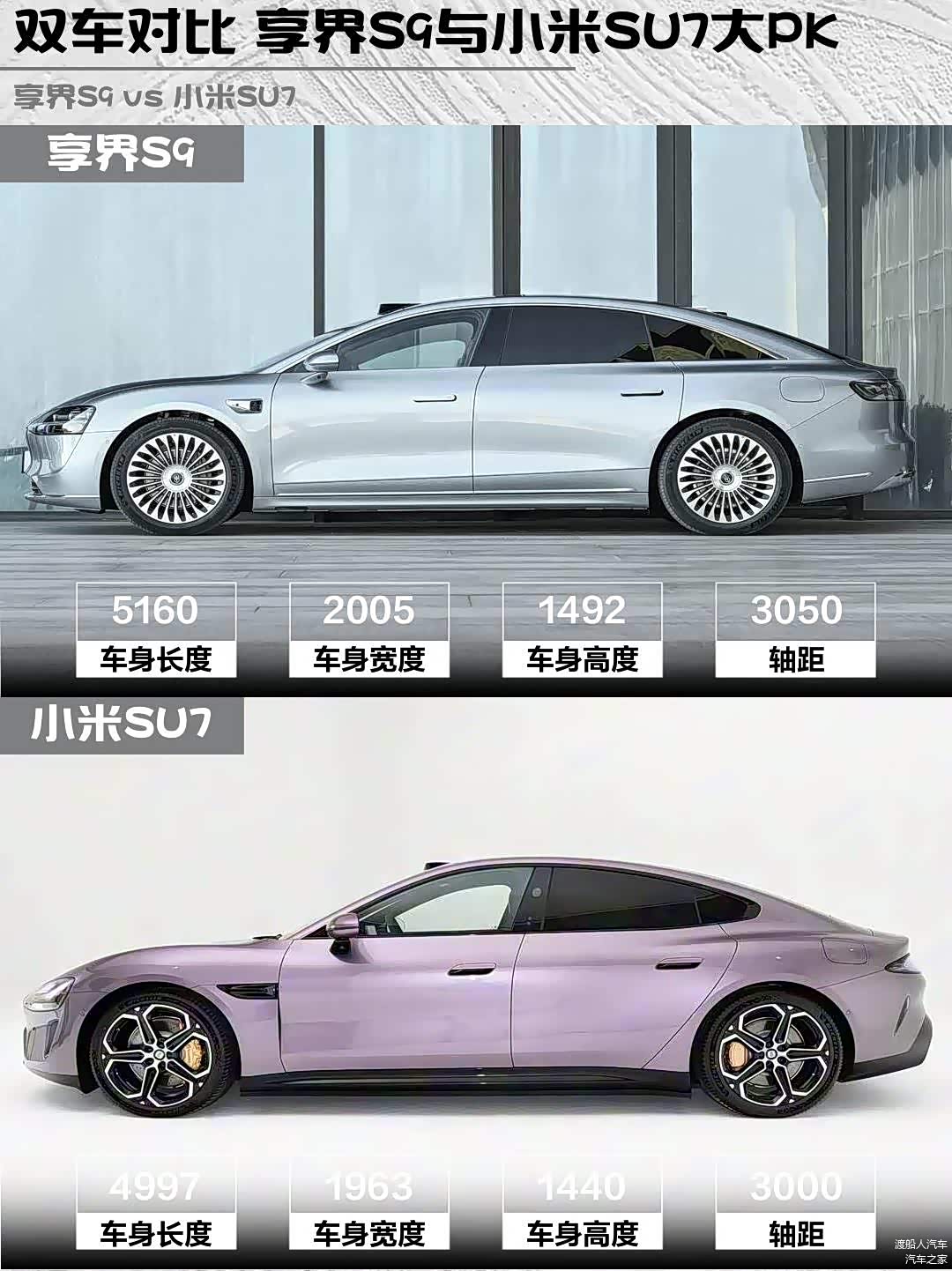 先看硬核数据:享界S9的721km CLTC续航比小米SU7的800km略逊一筹,但3.92秒破百的加速成绩在SU7的2.78秒面前确实要喊声"大哥"。不过享界胜在超5米车长带来的行政级气场,5160mm的车身比SU7足足长出163mm,后排二郎腿自由不是吹的🤯