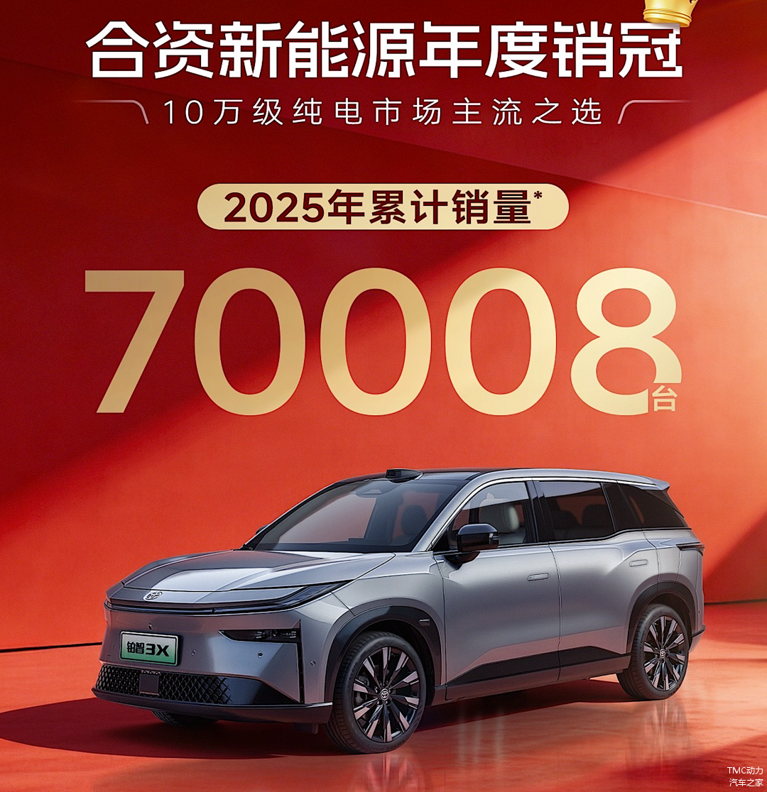 当我们回看2025年,合资新能源销量冠军铂智3X的成功之路,就知道广汽丰田的底气所在。丰田品牌和质量保障,再加上10万元级激光雷达智驾车的定位只是基础,从2025年3月开始,广汽丰田就集中资源和精力打造爆款,连续数月销量环比增长,直至10月开始连续3个月月销量破万,并且已经开始进军香港和中东等海外市场。在10万元级纯电动SUV市场,铂智3X可谓是群狼环伺,上市10个月累计销量超过7万辆,这是所有合资车企都未曾到达的高度,堪称合资车企在电动化转型中的一个成功范例。以恰到好处的配置让用户在力所能及的成本用上一辆品质好到要哭的电动智能汽车,这就是广汽丰田铂智品牌的理念,同样也是铂智7在坚守的底线。在过去的5年间,每一家想要与特斯拉和新势力争抢技术参数和市场流量的车企最终都会以失败告终,传统车企被打得忘记了自己的优势。广汽丰田用铂智3X验证了合资车企只要最大化发挥自己在汽车制造方面的优势,在电动智能汽车的技术和成本上实现最高价值比,就一定能收获用户的认可。