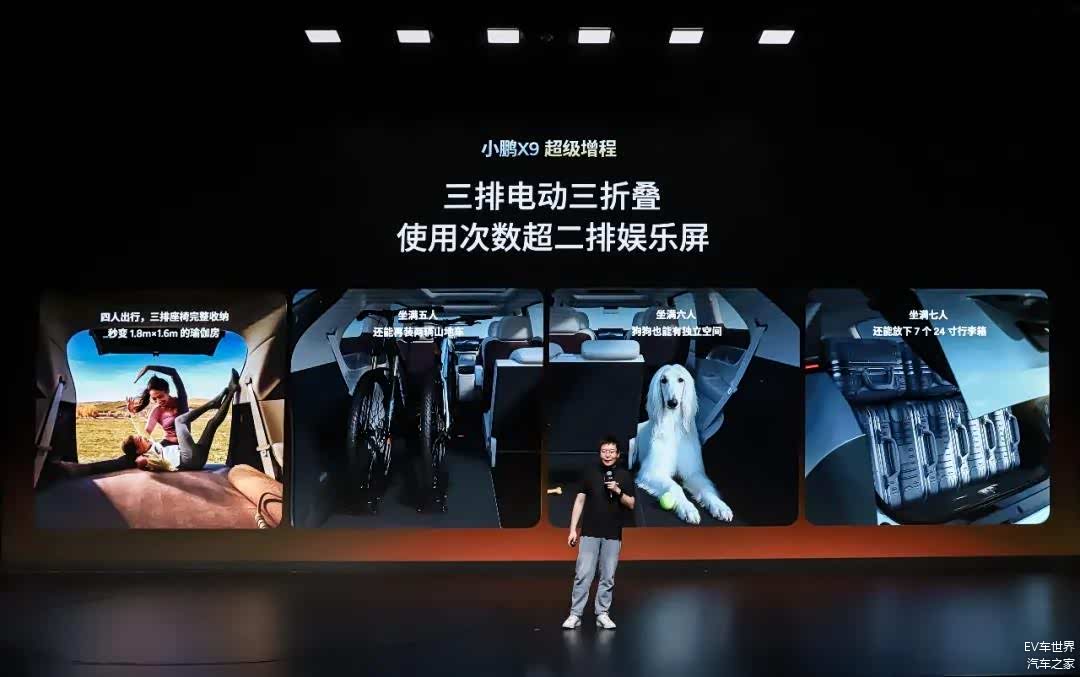 一个出色的设计仅仅只是吸引年轻人的第一步,能让小鹏X9超级增程在MPV中形成差异化竞争的一大亮点在于它所配备的行业首发三排电动三折叠,可在7座满员、5座载自行车、4座露营大床房模式间无缝切换,一车搞定通勤、带娃、社交、远行等多种生活方式。
