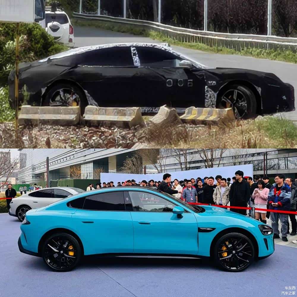 具体来看,第一台车型整体车身尺寸或略小于第二款车,看上去更加紧凑,车尾也没有第二款车那么平直方正。