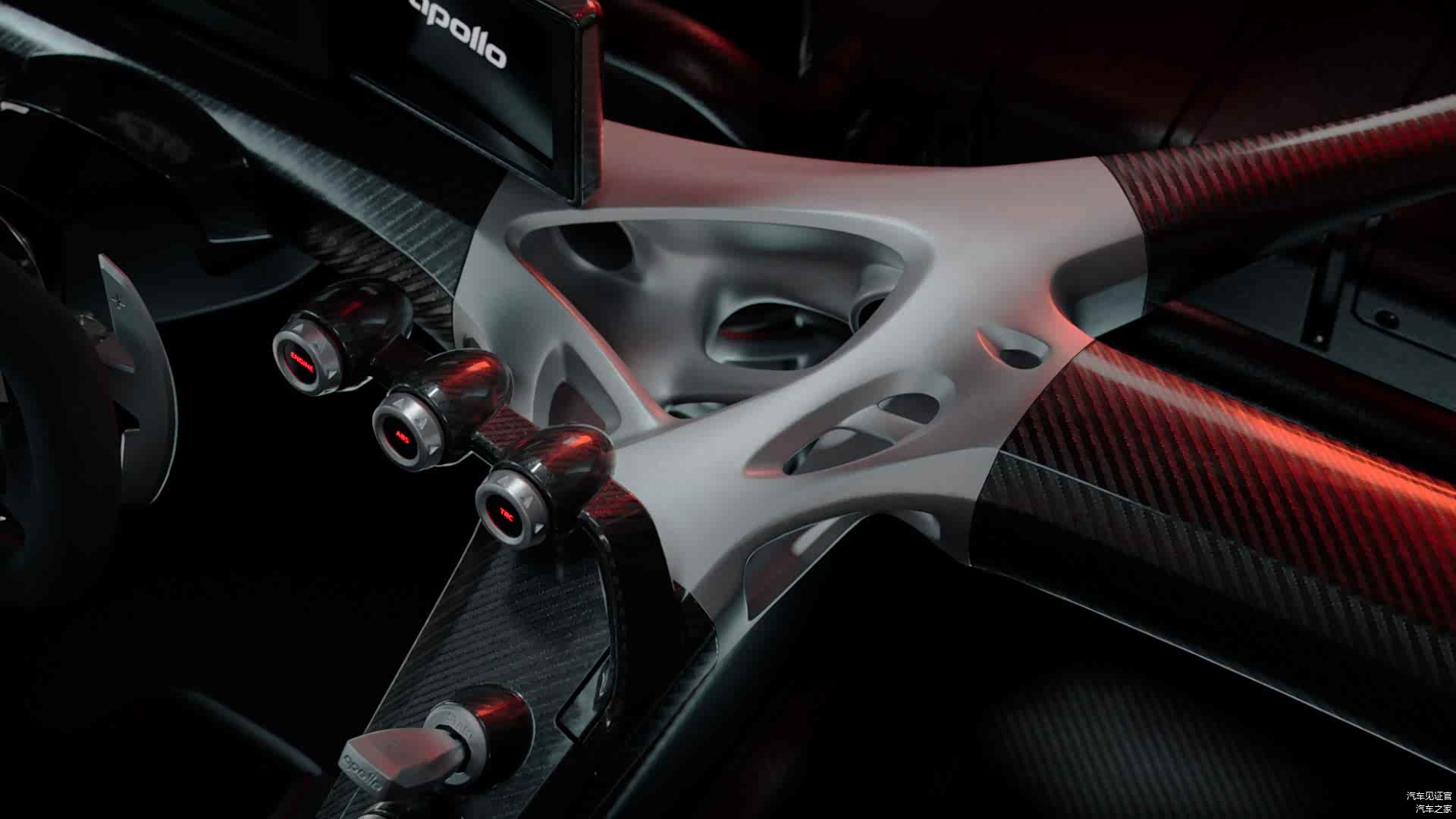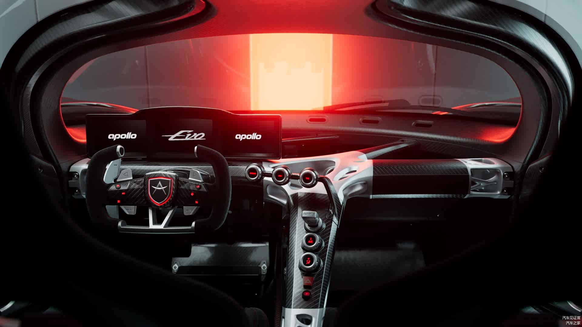 EVO最引人注目的技术突破在于其碳纤维单体壳车身,整备重量仅363磅(约165公斤)。据阿波罗官方表示,该结构比著名超跑Intensa Emozione的底盘刚性高出15%,同时重量减轻10%,为车辆带来无与伦比的刚性重量比,进一步提升动态表现与安全性。