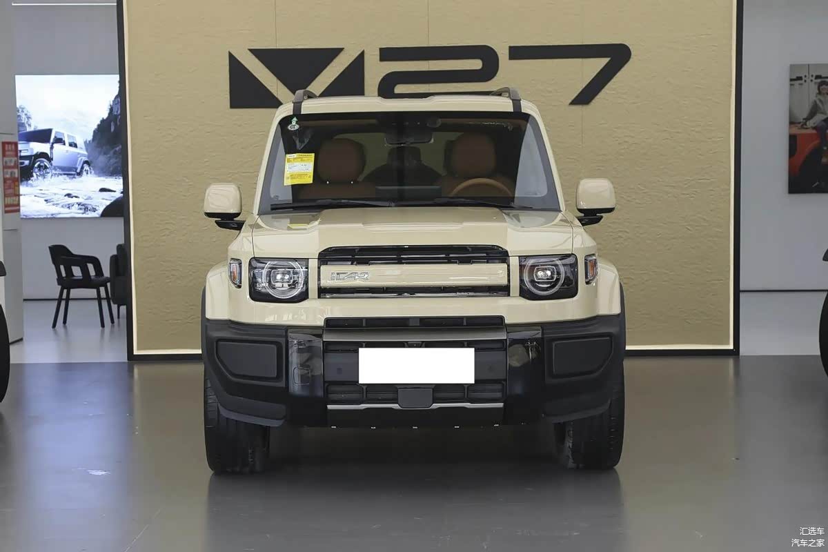 产品力方面,根据实拍图想必大家能够看到,iCAR V27虽说仍然是方盒子设计,但和此前推出的iCAR V23相比,整车可以说是采用了全新的设计语言打造,属于时下很流行的城市硬派风格,粗犷的同时又显得很精致。首先车头部分造型方正又大气,隆起引擎盖加上熏黑宽厚的前包围,硬派风十足,车头两侧配备了圆眼大灯,加上镂空格栅,又带来了一些复古气息。