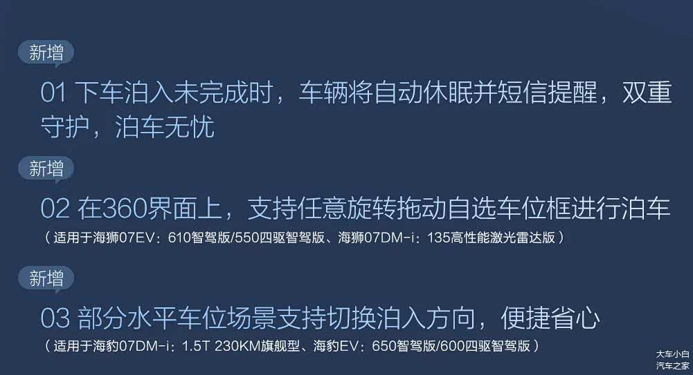 总的来说,这次OTA升级的核心是从单一的驾驶辅助,向覆盖行车、泊车、驻车安全及日常交互的全场景智能化体验迈进。特别是遥控泊车和哨兵模式的加入,解决了用户日常用车中非常具体的痛点。