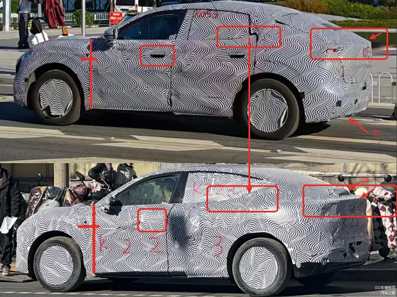 这是MONA D03,定位中型SUV,车长可能达到4.7米左右,轴距在2.8米左右,造型风格和D02摆在一起很难让人分辨谁是谁。动力部分,可以参考MONA M03,采用单电机布局,搭载磷酸铁锂电池,纯电续航在600km左右。MONA M03在2025年获得了不错的成绩,MONA D02和D03也一定被寄予了厚望,应该会在10万区间的市场有一番作为。