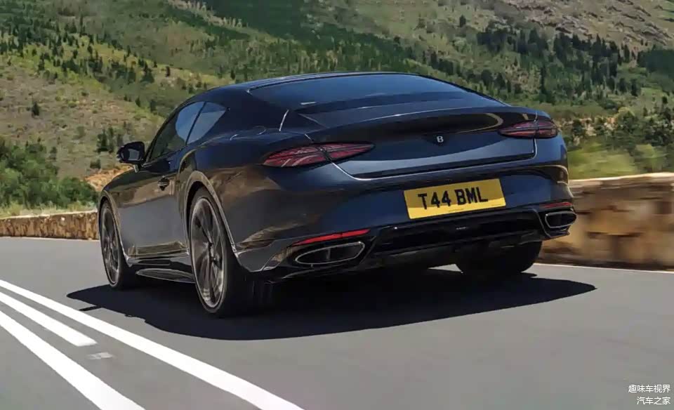 车身侧面延续经典GT轿跑姿态,线条流畅舒展,后轮轮拱大幅隆起,勾勒出饱满的肌肉感,硬顶版采用溜背造型,敞篷版可在50km/h以下完成顶篷的折叠与展开。新车配备22英寸定向式轮毂,灵感源自猛虎利爪,提供熏黑抛光、亮黑或银色涂装可选,搭配红色刹车卡钳,运动气质拉满。车尾优化为经典椭圆形LED尾灯,搭配烟熏灯罩与双边共四出排气系统,保险杠经过重新设计,整体兼顾奢华格调与运动气场。