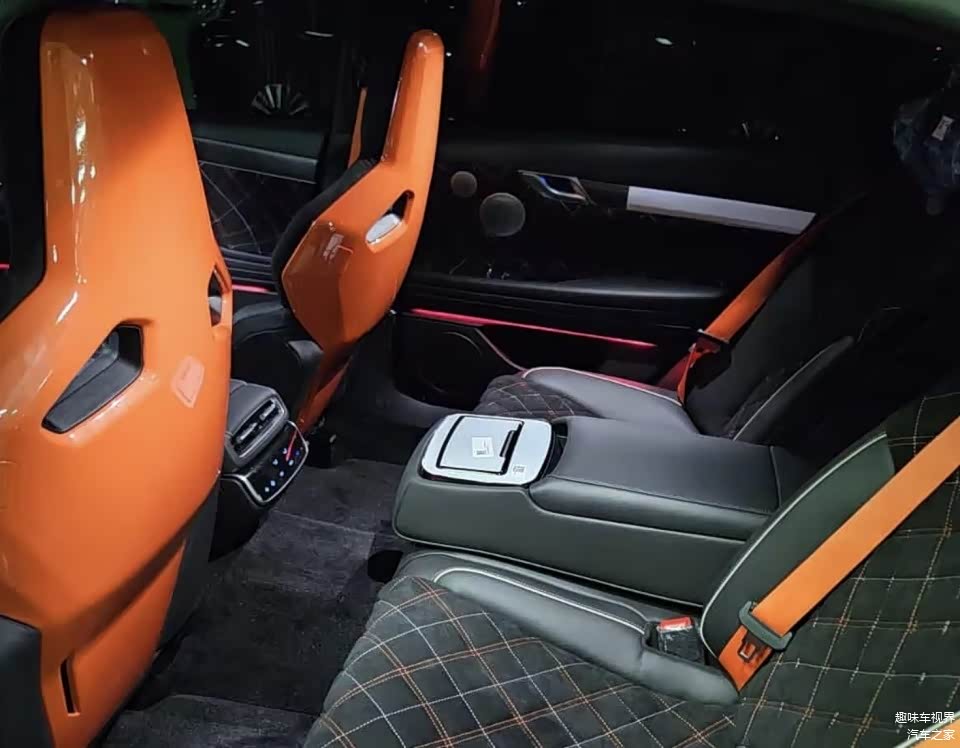 内饰以豪华与运动融合为核心,大量运用Alcantara面料与碳纤维饰板,兼顾轻量化与精致质感,与外观运动格调形成呼应。座舱配备带有橙色背板的Recaro运动座椅,采用黑白橙撞色菱形缝线设计,包裹性极强,适配激烈驾驶场景,方向盘配备橙色回正标记,细节处凸显性能基因。中控区域保留家族式布局,融入碳纤维饰板点缀,配备全液晶仪表与悬浮式中控屏,实现车辆状态与赛道数据实时显示,兼顾实用性与科技感,每一处细节均经过手工打磨,凸显限量车型的专属质感。