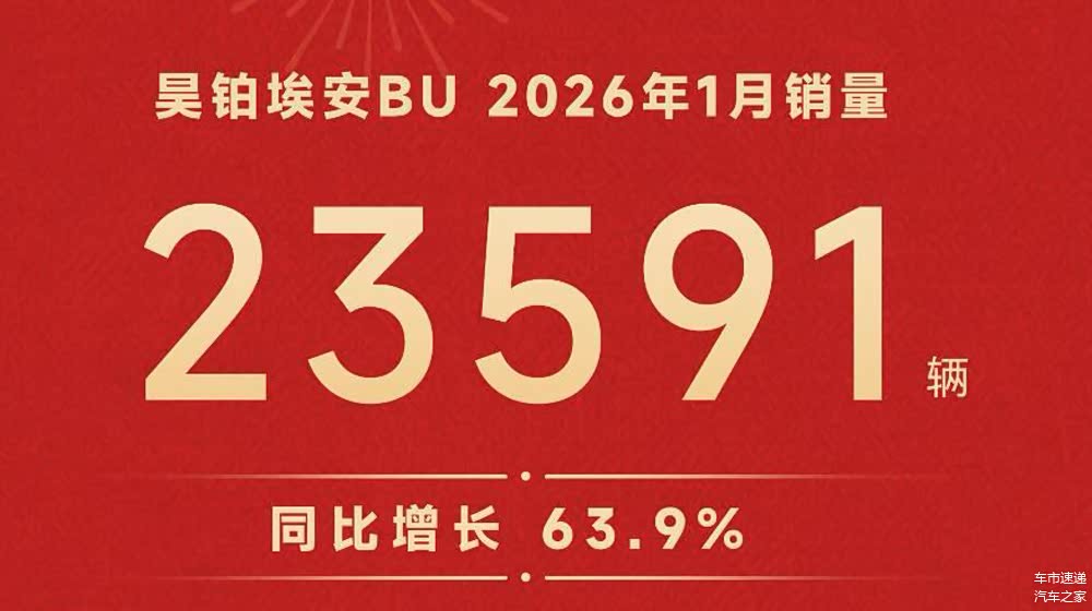根据公开的销量快报显示,2026年1月份,广汽集团旗下的昊铂埃安BU单月销量为23591台,同比增长63.9%。