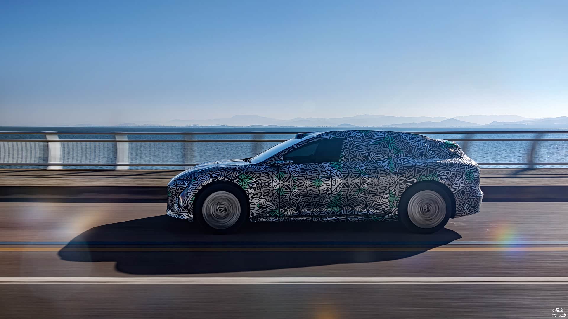侧面造型方面,车身采用的是经典的旅行车造型,车顶带着明显的弧度,配备有行李架,有着一定的力量感;腰线采用了分段式设计,点缀出了车身侧面的层次感;门把手则采用了内凹式造型,搭配电子外后视镜能够兼顾低风阻以及实用性;轮眉和侧裙部分设计有隆起的筋线,带来了一定的肌肉感;轮毂位置覆盖有伪装,具体的细节还无法判断。