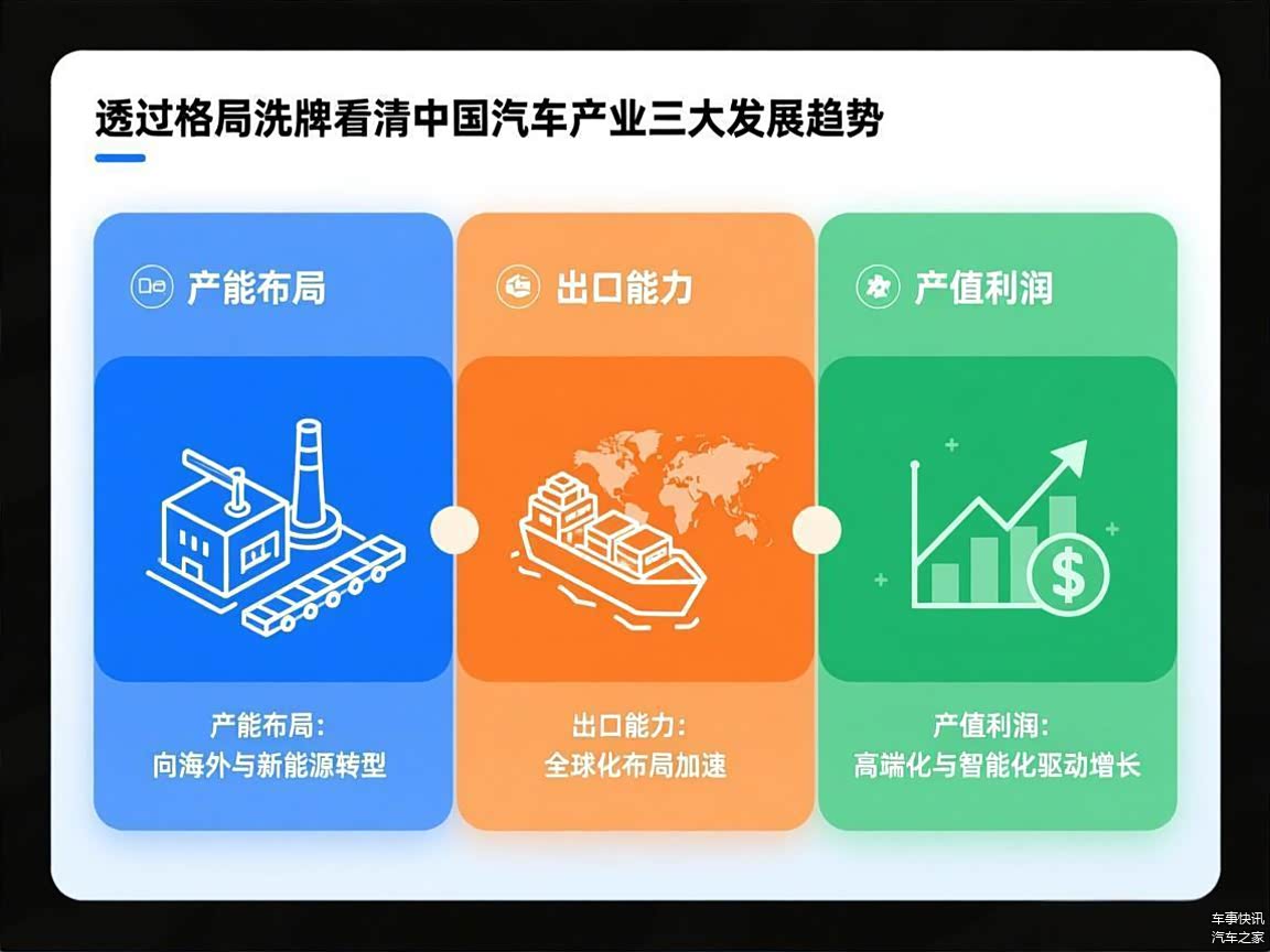 透过这场格局洗牌,我们能看清中国汽车产业的三大发展趋势。其一,产能布局从“沿海一家独大”走向“多极化+专业化”新均衡,前十省份差距持续缩小,竞争从规模比拼转向质量与效率较量。其二,出口能力成为省份增量的核心弹性,拥有港口或中欧班列节点、本地化率高的省份,将在未来持续上位。其三,产值和利润比产量更关键,能将“产量优势”转化为“效益优势”的省份,才能成为真正的汽车强省。
