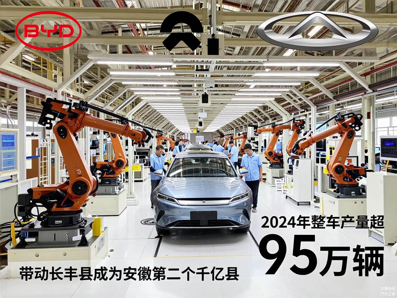 值得一提的是,比亚迪合肥基地的爆发力尤为惊人,50秒就能下线一辆车,2024年整车产量超95万辆,不仅带动长丰县成为安徽第二个千亿县,更成为安徽产能跃升的关键支柱。同时,奇瑞、蔚来、大众安徽等企业协同发力,加上王传福、尹同跃、李斌等“皖军”力量加持,徽商回归带来的产业集聚效应持续凸显,让安徽的产业根基愈发稳固。