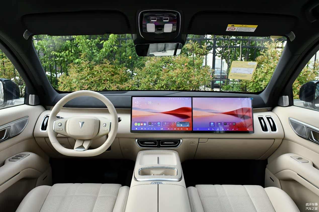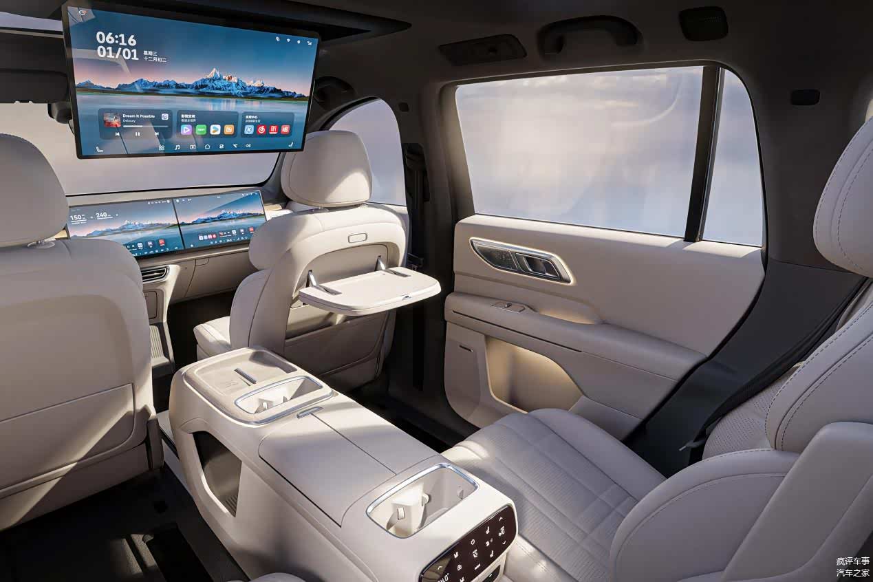 不仅如此,虽然前排两者都提供了类似的超大主副驾屏幕,但在二排的屏幕上,深蓝S09是21.4寸而银河M9仅有17.3寸,所以,这种细节上的诚意,还是会带来二三排用户体验上的不同的。而有趣的是,二三排用户的体验,不正是我们购买大六座车型的核心需求吗?尤其是过年回家的时候,这个需求更会成倍的放大。
