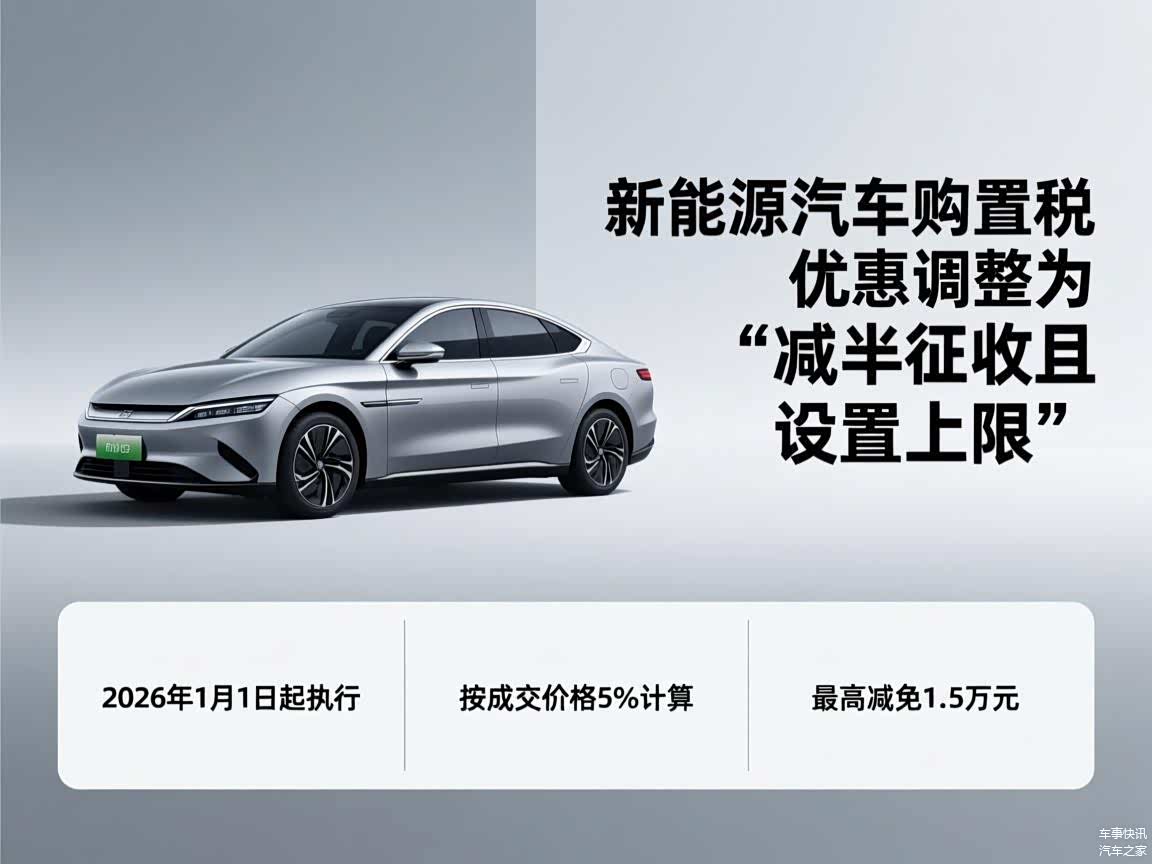 其一,新能源汽车购置税优惠调整为“减半征收且设置上限”。自2026年1月1日起,新能源汽车免征购置税政策正式调整为减半征收,按车辆成交价格的5%计算,最高减免金额为1.5万元。这意味着,成交价格30万元以上的新能源车型,可享受最高额度补贴;30万元以内的车型,补贴额度随车辆价格递减,间接引导消费需求向中高端新能源车型集中。相较于去年全额免征政策,虽表面优惠力度有所收缩,但结合其他补贴政策,中高端新能源车型的综合优惠优势更为突出。