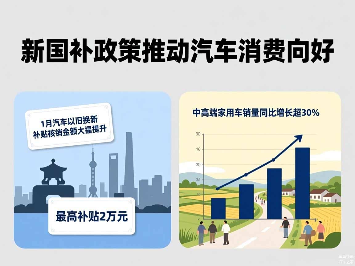 作为长期深耕汽车行业的从业者,本月最直观的行业感受是车市呈现显著回暖态势——2026年新国补政策正式落地实施,恰逢春节前消费旺季,首月便有效激活汽车消费升级动能,成为拉动车市增长的核心引擎。与往年普惠式补贴模式不同,本年度新国补精准发力、定向扶持,不仅重构了补贴逻辑,更引导消费者购车需求升级,推动汽车市场向高端化、绿色化转型。本文结合新国补首月市场数据、政策核心要点拆解及行业实际案例,深入解析新国补的实施成效,为消费者购车提供专业参考。