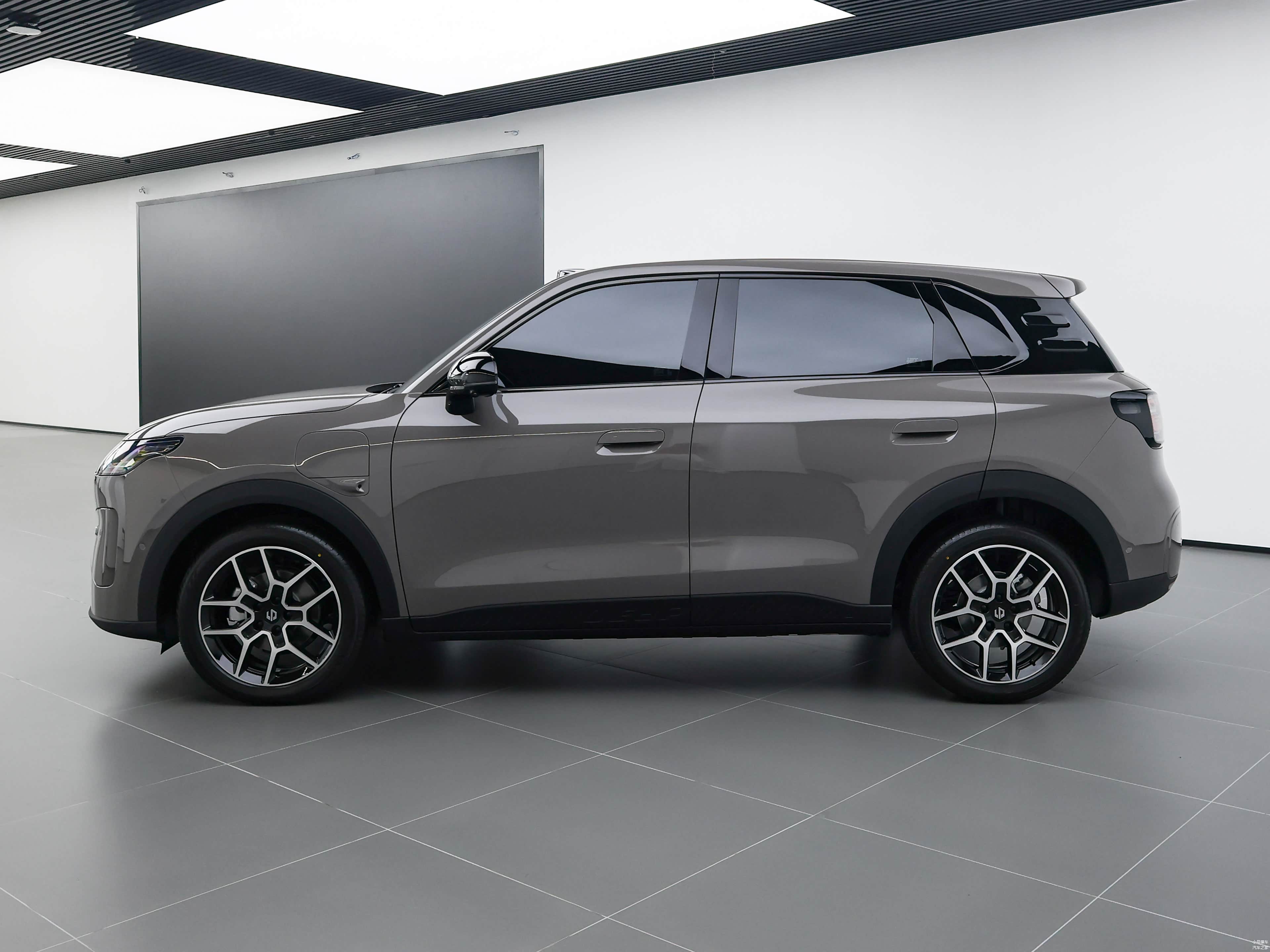 侧面造型方面,车顶带着明显的弧度,线条感显得比较干练,而且还营造出了悬浮式车顶,属于目前比较流行的设计语言;腰线采用了贯穿式设计,从前翼子板延伸到车尾,点缀出了车身侧面的层次感;门把手采用了内凹式设计,点缀出了车尾的层次感;下包围部分配备有粗壮的黑色饰板,进一步增强了力量感;轮毂采用的是双五幅式造型,风格还算大气。