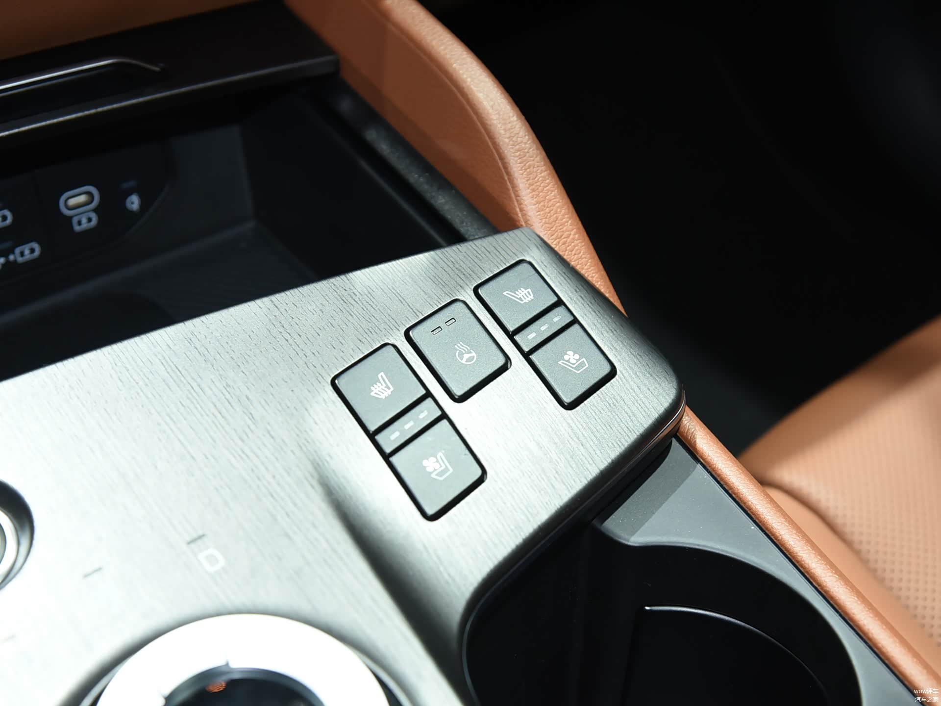 高配车型上的方向盘加热、座椅通风/加热的按键,也被布局在换挡旋钮右侧,虽然按键和面板的颜色质感有些违和,布局在这里视觉效果有点过于直白,但冬天戴着手套在这里操作实体按键,这样的便利性是毋庸置疑的。