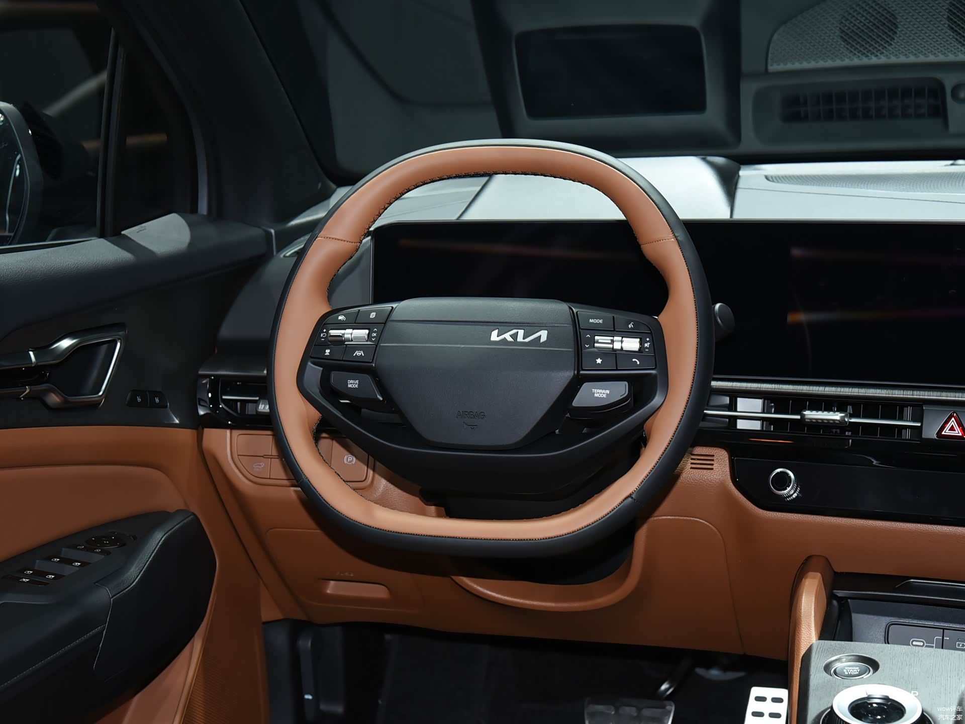 首先是方向盘,现款为圆形平底造型,中央的KIA logo比较大,并且有一个银色圆环。新款方向盘近似于多边形,采用两辐结构,上下都采用了趋于平底的造型,中央的KIA logo变小了许多,摆放位置偏向右侧,有了一些“排版”的秩序感。