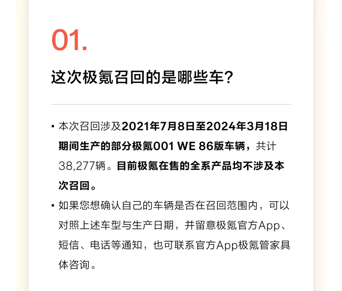 还有一个细节大家可以留意一下,这次召回有明确的范围,只针对特定批次的极氪001 WE 86版车型,这背后能反映极氪对隐患的精准溯源。这次涉及召回的批次,搭载的是欣旺达供应的86度电电池包,而极氪001的长续航版等其他车型,用的则是宁德时代的电池包,这也就解释了为什么召回范围会这么集中,不是所有极氪车型都有这个问题。