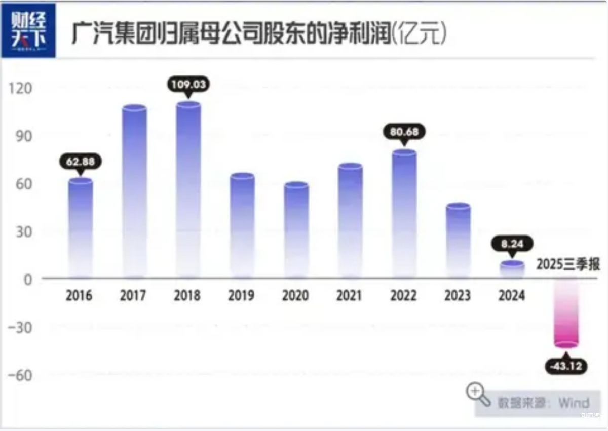 技术误判,直接影响在销量上。2025年,广汽集团总销量172.15万辆,比目标差了近60万辆,同比下滑超过14%。更致命的是,过去那些躺着赚钱的“利润奶牛”——合资品牌,突然挤不出奶了。