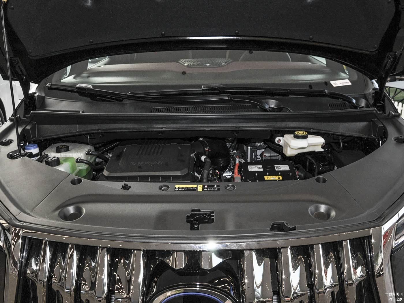下包围部分,2026款传祺M8 HEV的设计很有棱角感,中间保留了扁平的进气口造型,并加入立体感十足的镀铬条进行装饰,整个车头看上去非常个性。