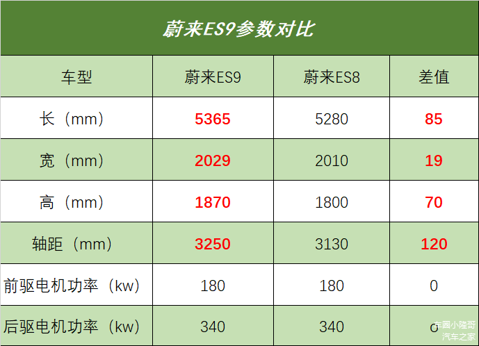 轴距比ES8大了120毫米,其余尺寸也都不小的提升,但电机功率保持一致,前后电机峰值功率分别为180千瓦和340千瓦。