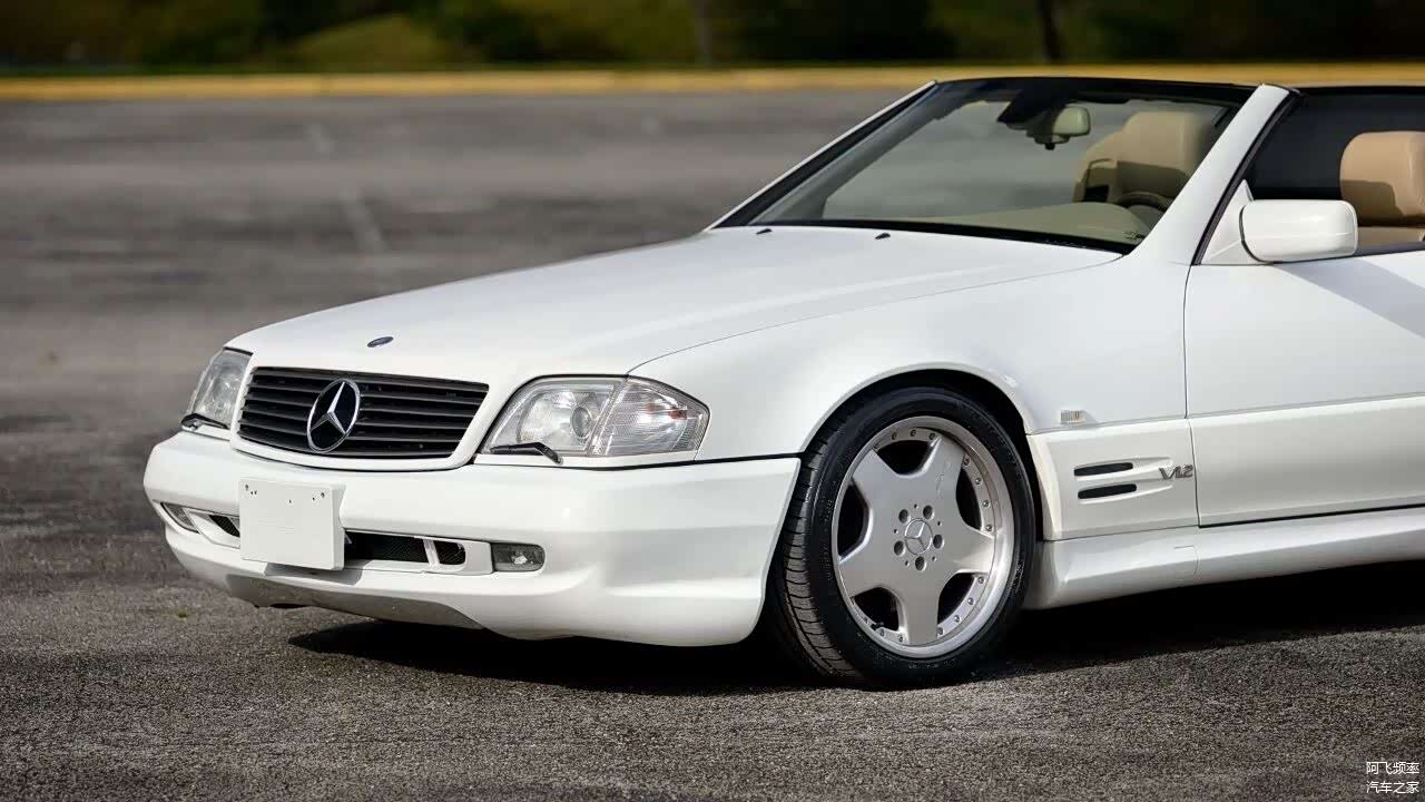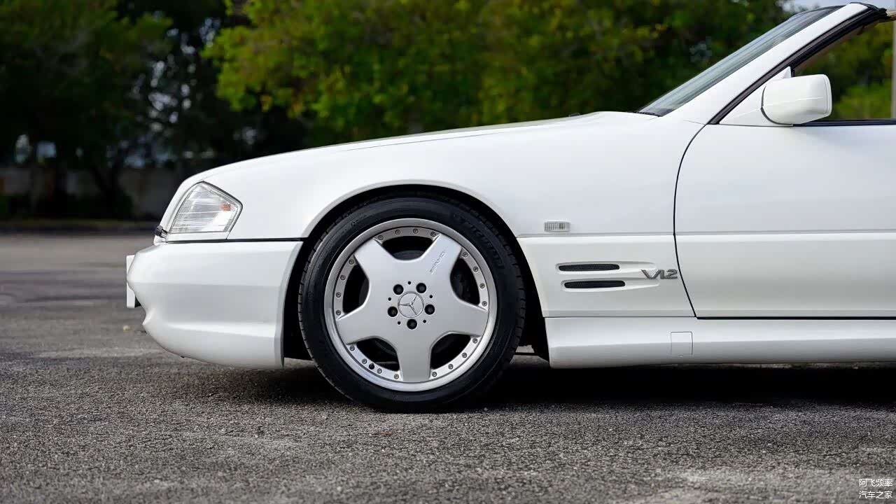 这台SL的故事始于一辆标准的、极地白(149)配色的奔驰SL 600。作为R129世代的旗舰版本,SL 600本身已是90年代豪华敞篷车的标杆,搭载6.0L V12发动机,原厂394马力的动力在当年已足够震撼。但它并未止步于此,在出厂后便直接进入AMG位于Affalterbach的总部,开启了一场彻底的性能蜕变。