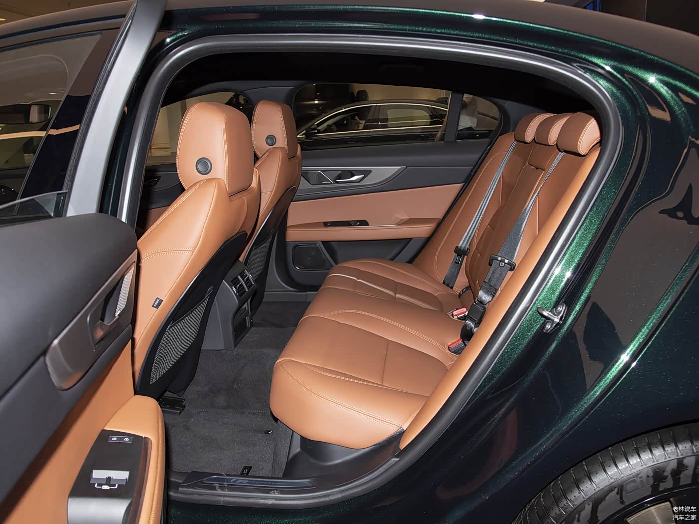 捷豹XEL的后排空间一点也不局促,腿部空间很宽敞,只不过后排地台隆起很高,影响中间乘客的乘坐体验。该车配备了12喇叭的英国之宝音响系统,音响效果还不错。