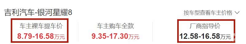 对于购车预算不足的消费者来说,如果没有10万元,还想要插混C级车,选择将会变得十分困难,而吉利 银河星耀8(图片 | 参数 | 询价)就是一辆插混C级车,不过该车售价12.58-16.58万元,那些价格敏感群体似乎不能以10万元以内的价格拿下它,不过吉利汽车“掀桌子”后就好说了。
