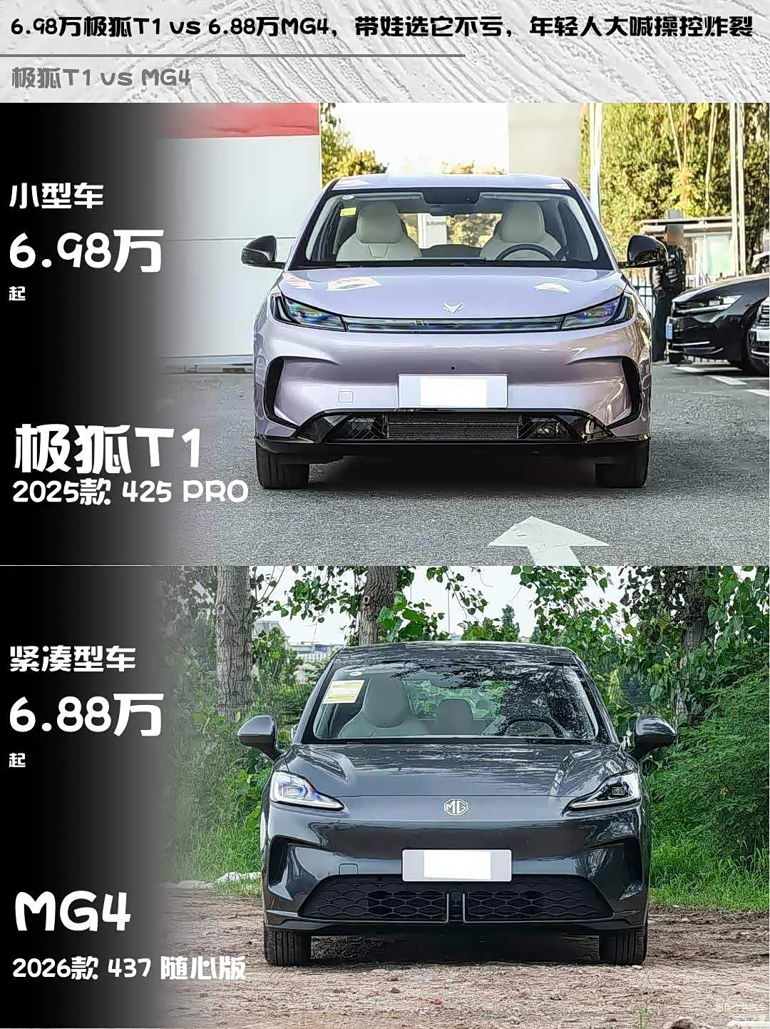 最近在选纯电小车的小伙伴看过来! 极狐T1(图片 | 参数 | 询价) 2025款 425 PRO和MG4 2026款 437 随心版这两款7万级热门车型,我深度体验后给大家做个真实对比🆚