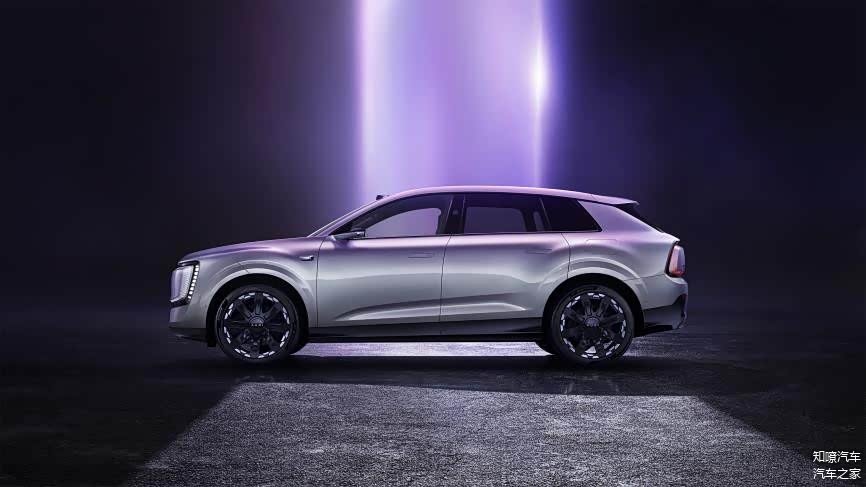车身侧面是溜背轮廓,车顶前缘顶着一颗激光雷达,前翼子板上留有感知摄像头的开孔。轮眉做了宽体处理,轮圈提供21英寸和22英寸两种规格,其中22英寸八条辐轮圈是首发款之一。外后视镜有电子版和传统光学版可选。