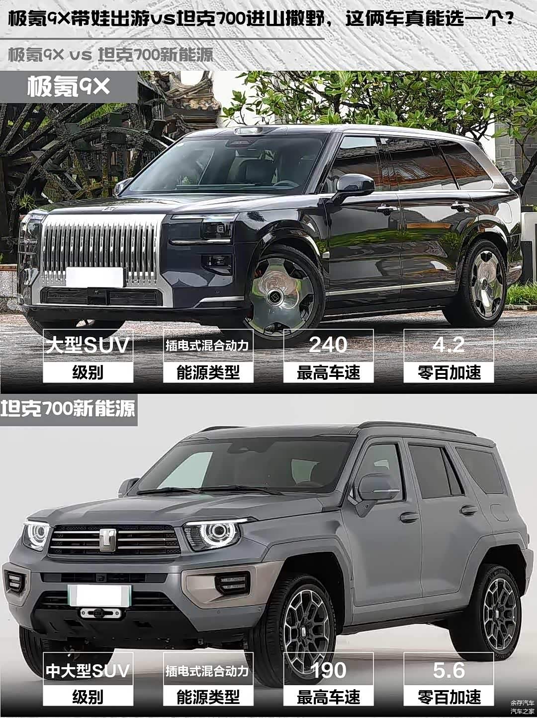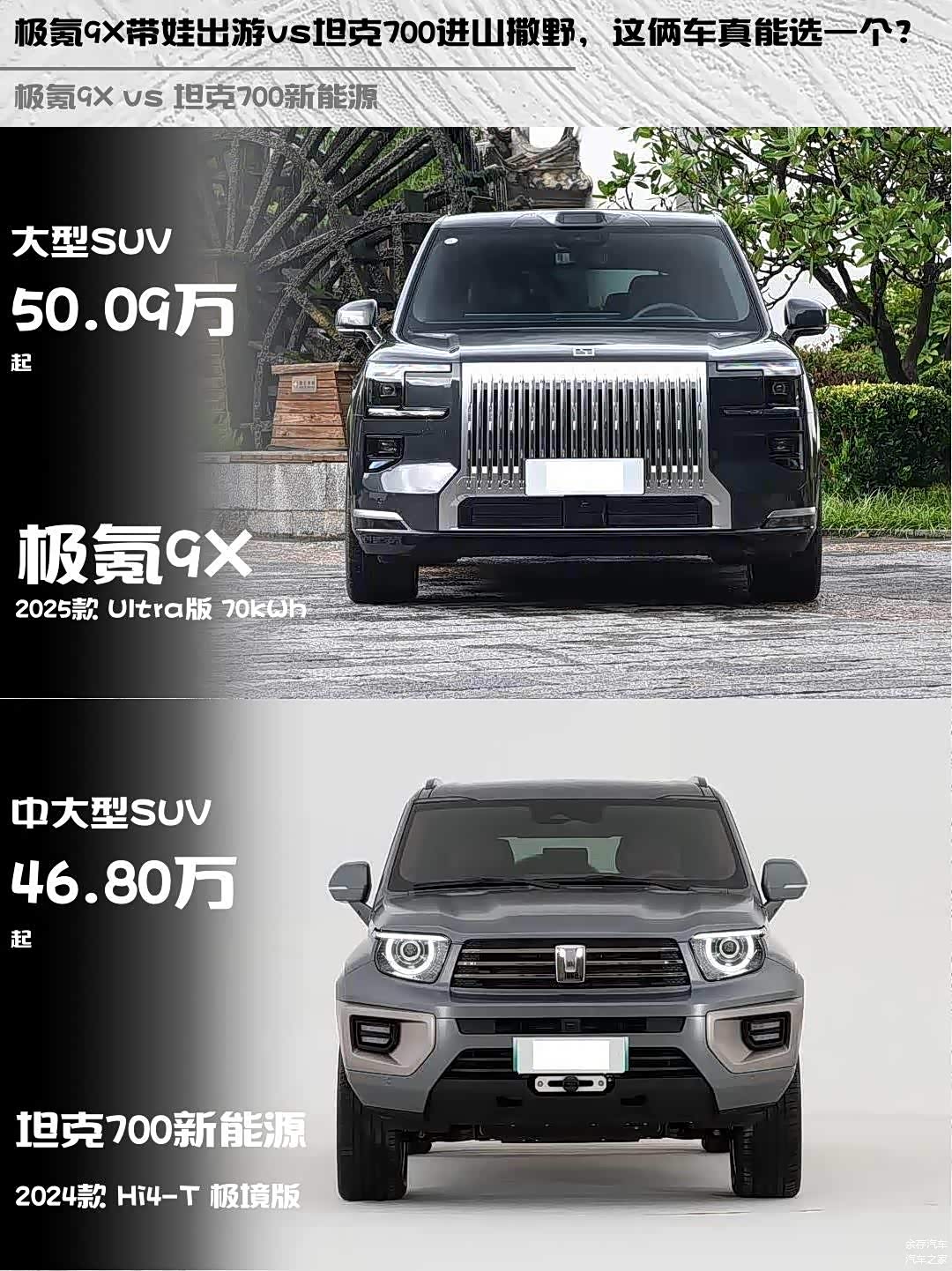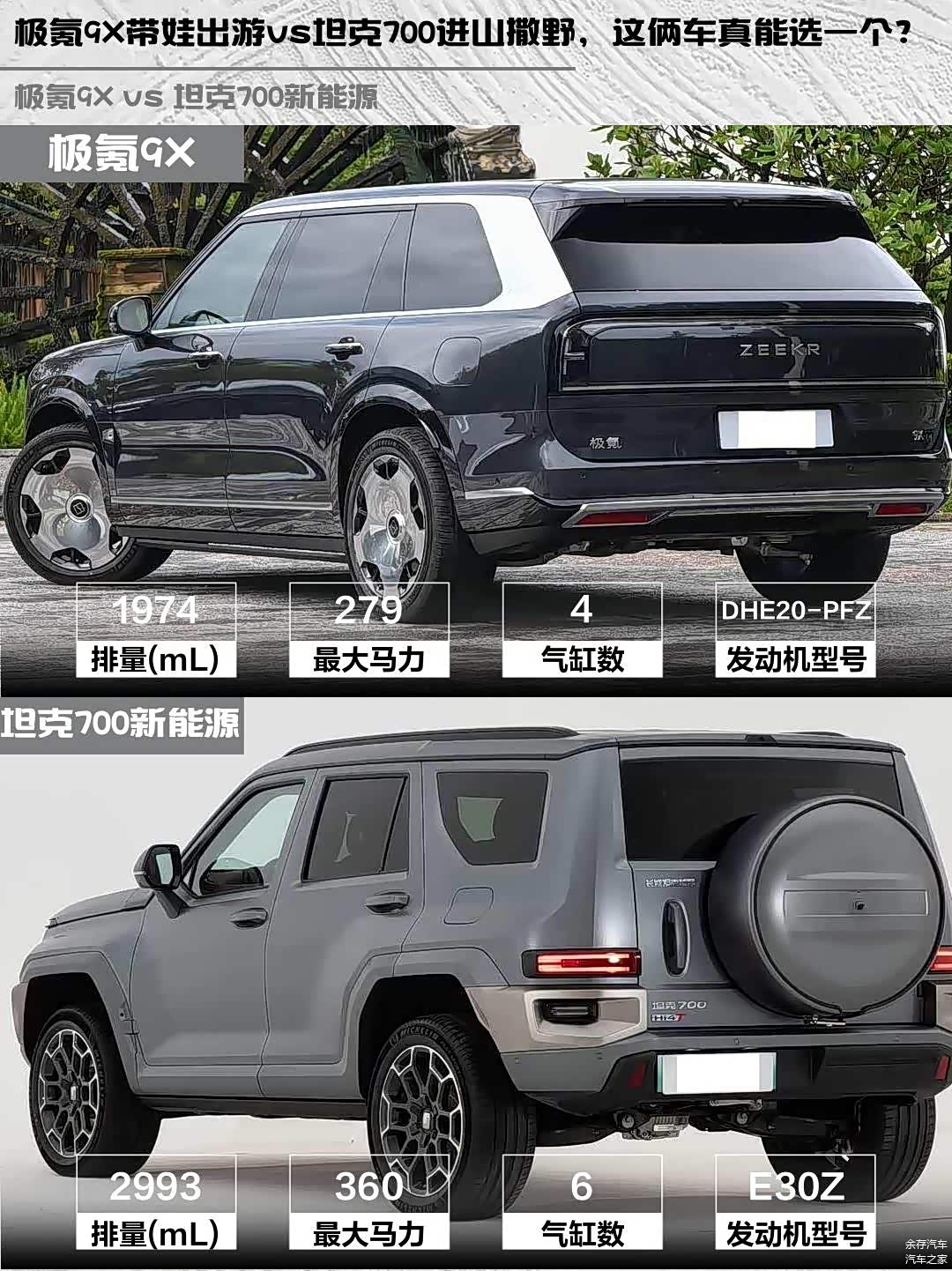 最近后台好多人在问极氪9X和 坦克700新能源(图片 | 参数 | 询价)怎么选,这两台车定位其实挺有意思的,一个是豪华科技派,一个是硬核越野咖,今天就来个深度对比!🚗💨