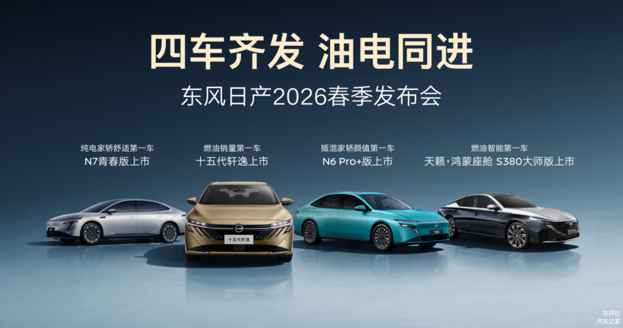 2月24日,东风日产借着春潮搞了波大动作。“四车齐发,油电同进”的春季发布会,直接把 2026年车市的内卷门槛又抬了一级。十五代 轩逸(图片 | 参数 | 询价)、天籁・鸿蒙座舱S380大师版、N6 180 Pro+、N7青春版,四款车覆盖了从家用刚需到智能高端的核心战场。价格一出来,现场不少媒体同行直呼:这哪里是上市,分明是给竞品施压!
