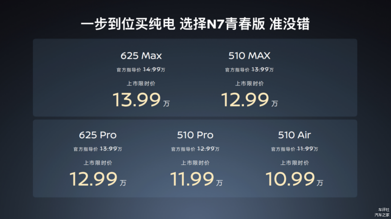 最后是 N7全系焕新的青春版,价格区间 10.99万 —13.99万。